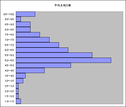 採点数:9110 (一人平均44.4本 , 一作品平均87.6本)