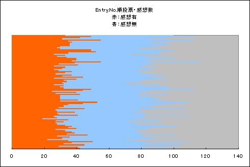 感想数:3626 (一人平均17.7本 , 一作品平均34.7本 , 採点本数比 39.8%)